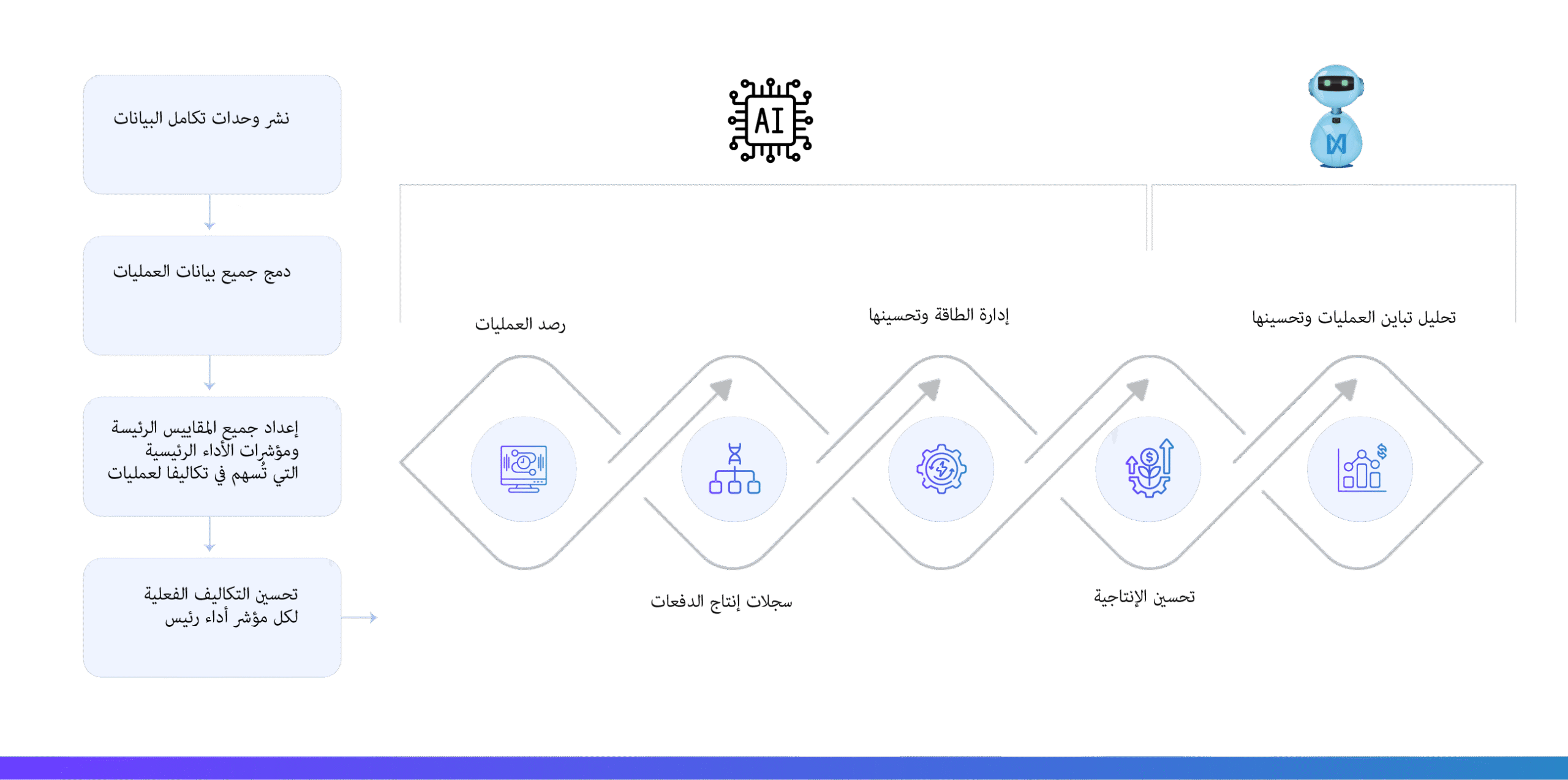 الاستفادة من تحليلات البيانات والتعلم الآلي لتحسين جودة الإنتاج وكميته من خلال تقليل متغيرات العمليات والهدر.