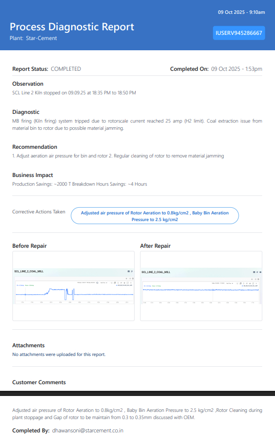 The following Process Diagnostic Report, drawn from live cement plant deployments, show what this looks like in practice.