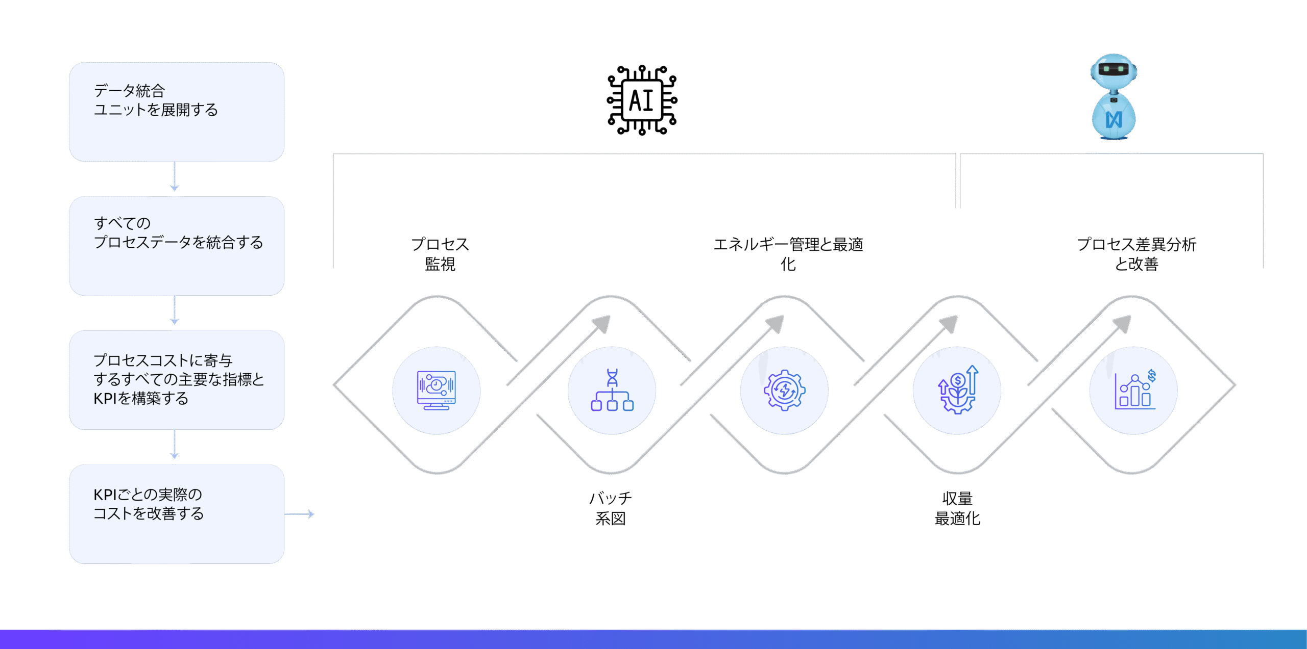 データ分析と機械学習を活用し、プロセスの変動と無駄を最小限に抑えることで、出力の品質と量を最大化します。