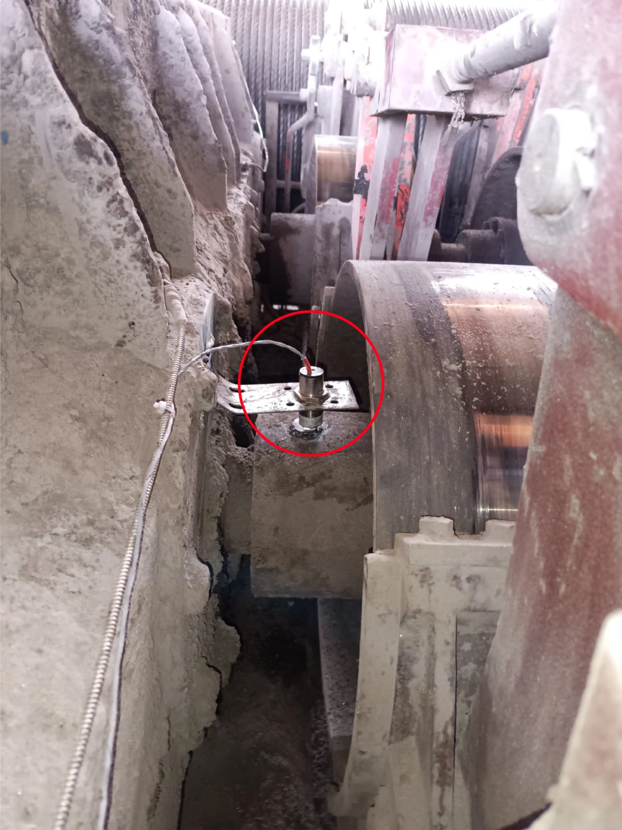 Proximity Sensor installed on the Gearbox Output of a Casting Crane live deployment at a leading global steel manufacturer.